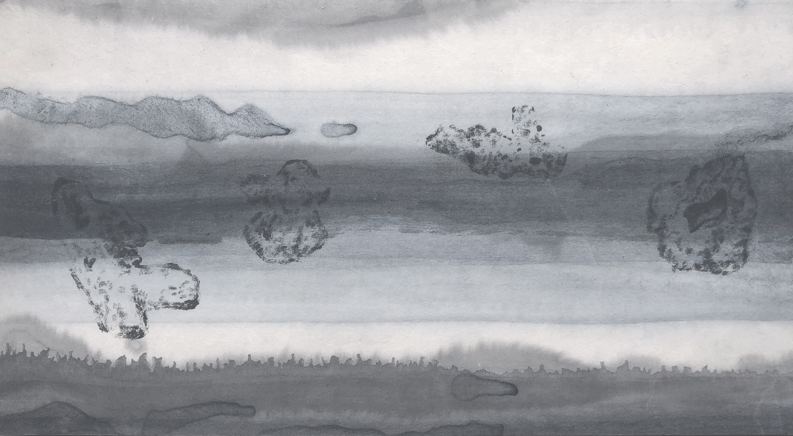 Contours in the Sky 空の等高線 98 X 55 cm Sumi ink,water colour, acrylic 墨、水彩絵具、アクリル 2020 jpeg