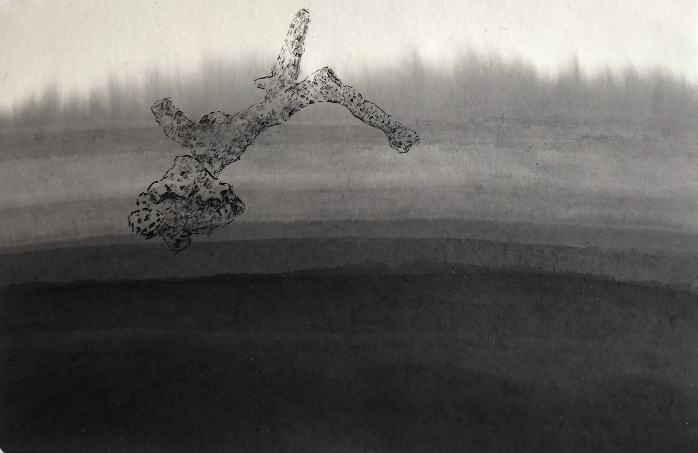 Island-Seams-5-ab-Sumi-ink-mud-dye-Japanese-hawthorn-washi-島の地層5-ab-墨泥染車輪梅、和紙.-32-X-18-cm-each-各  2024- b min_